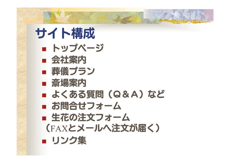 サイト構成 会社案内 葬儀プラン 斎場案内